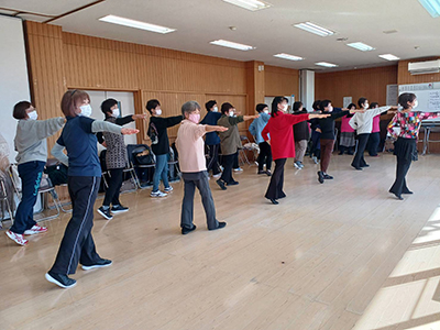 2025年1月30日(木)いわき市健康推進員協議会四倉地区の主催による、フレイル予防講話があり、原因の一つである運動不足の予防策という事で、地域の皆さまに「 Lalaハートフライズ」を体験していただき、ALI認定講師 坂本 小夜子 先生が講師を務めさせていただきました。